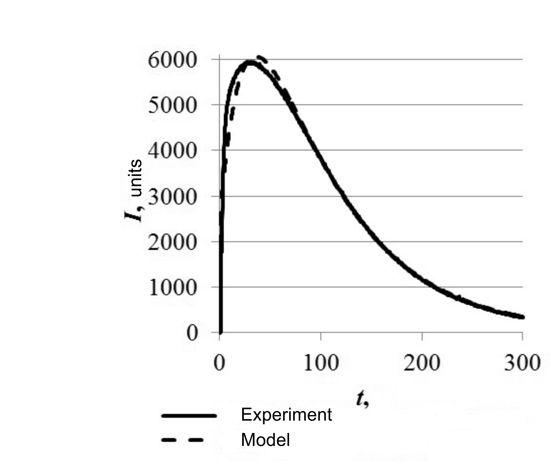 1. Fig. 2. The kinetic dependence modeled by the difference of two exponents and the experimental kinetic curve. | |