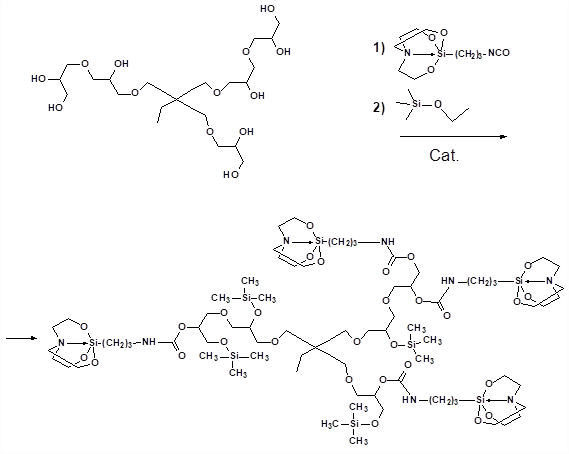 Methods. The branched polymers were represented by polyethers and polyesters, obtained respectively via the anionic polymerization of 1,2-epoxypropanol or a combination of equilibrium polycondensation and ring opening polymerization. The polymers were modified with 3-isocyanopropylsilatrane and trimethylethoxysilane to obtain the amphiphilic compounds containing silatrane groups bonded to the polymer backbone by the urethane bond. The structure of the synthesized polymer silatranes was confirmed via nuclear magnetic resonance spectroscopy and gel permeation chromatography. The surface active properties of all the copolymers obtained were investigated in connection with their obvious amphiphilicity. In particular, the formation of micelles in aqueous solutions is such a property. The critical micelle concentrations were determined by a method of quenching the fluorescence of the polymers.