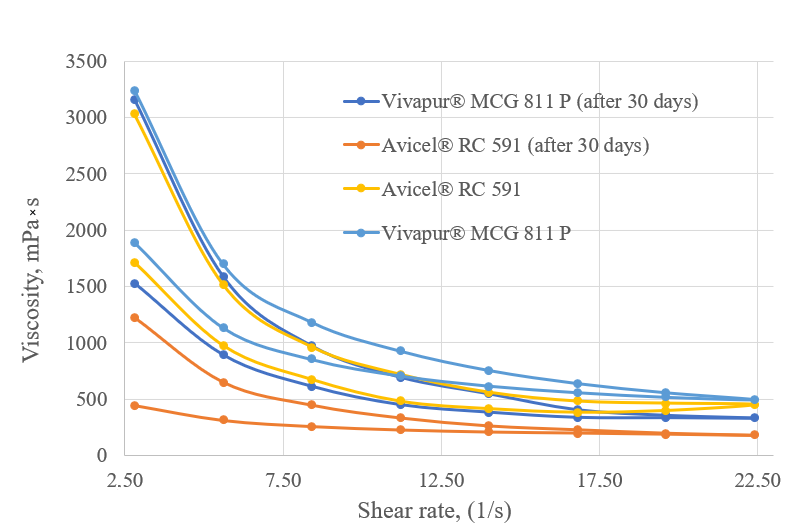 1. Viscosity–velocity curves of samples 4 and 5 at 25ºС. | |