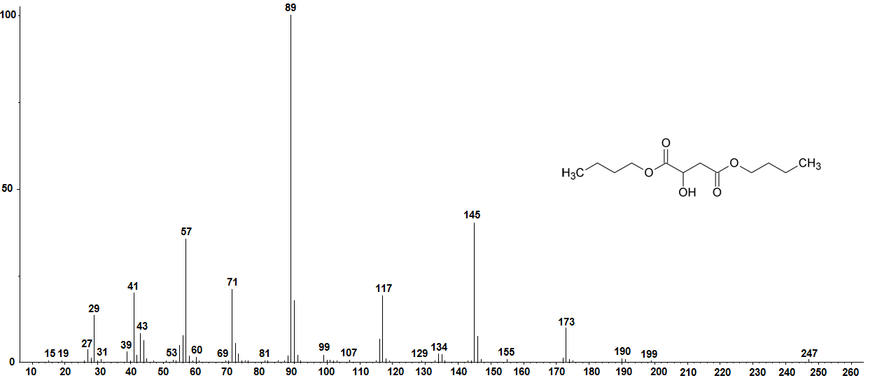 1. Mass spectrum of malic acid dibutyl ester. | |