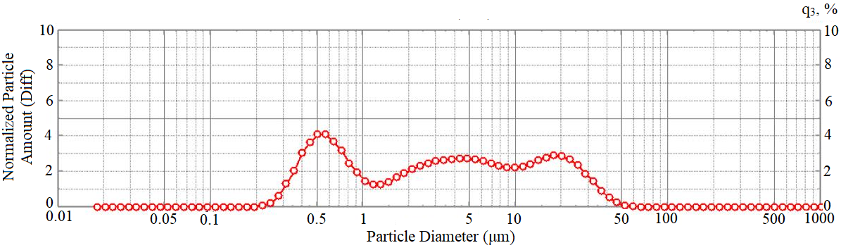 1. Дифференциальная кривая распределения частиц порошка байерита по размерам. | |