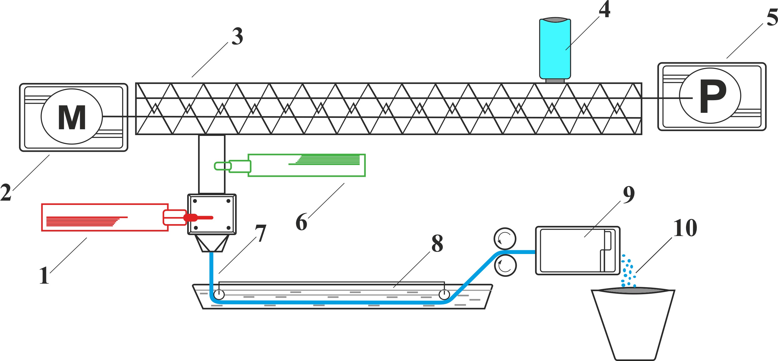 1. Schematic of the twin-screw extruder for obtaining composite granules (see the article)