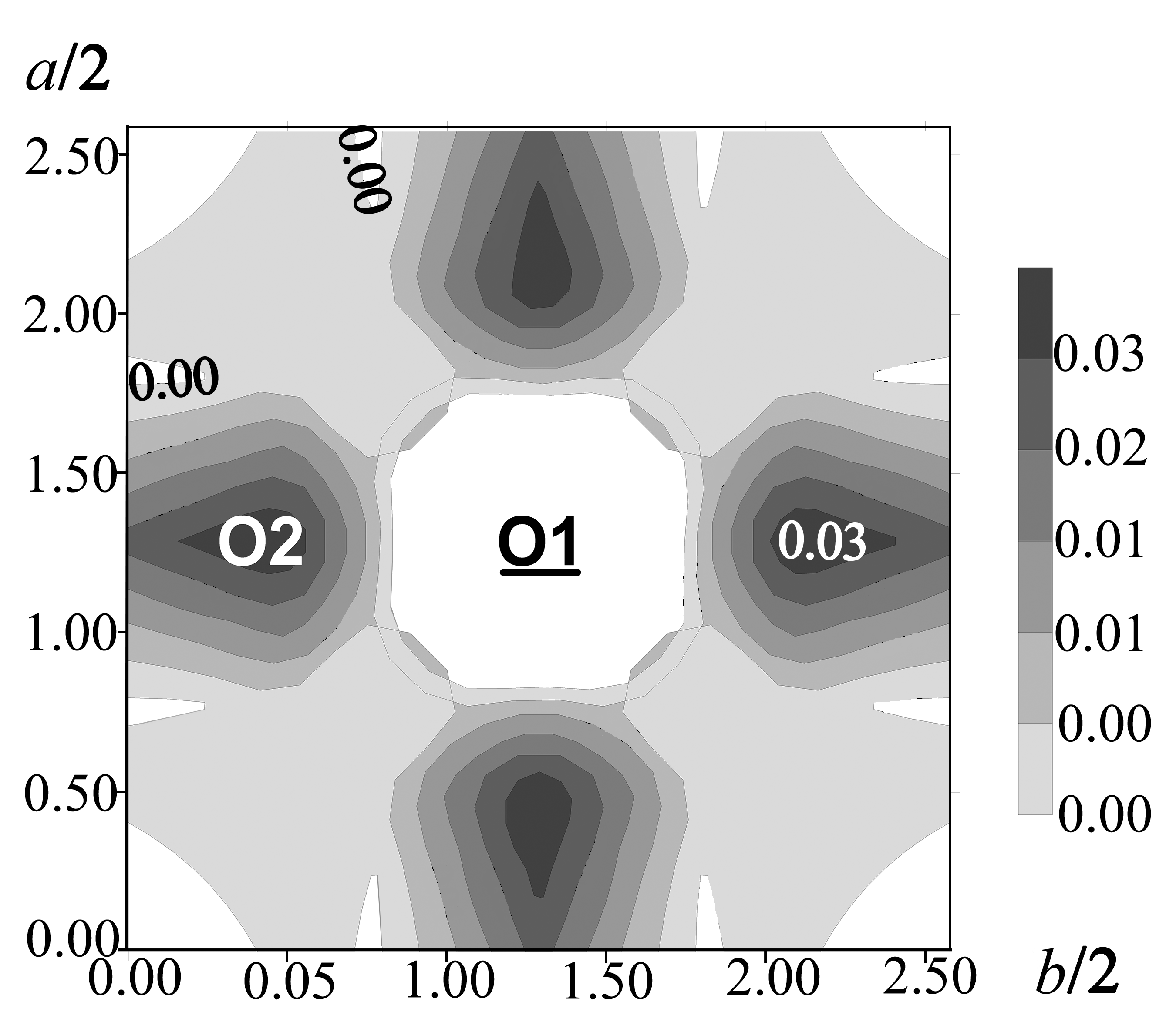 1. Fig. 6. Crystal (1 − x)ZrO2∙xY2O3 with x = 0.12. The cross section of the unit cell z/c = 0.25.