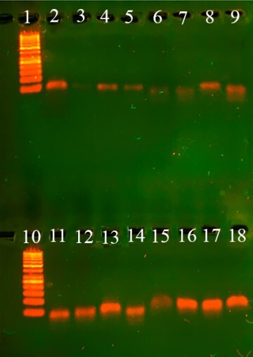 1. Fig. 3. PEX electrophoretic analysis with DNA polymerases and specially designed templates.