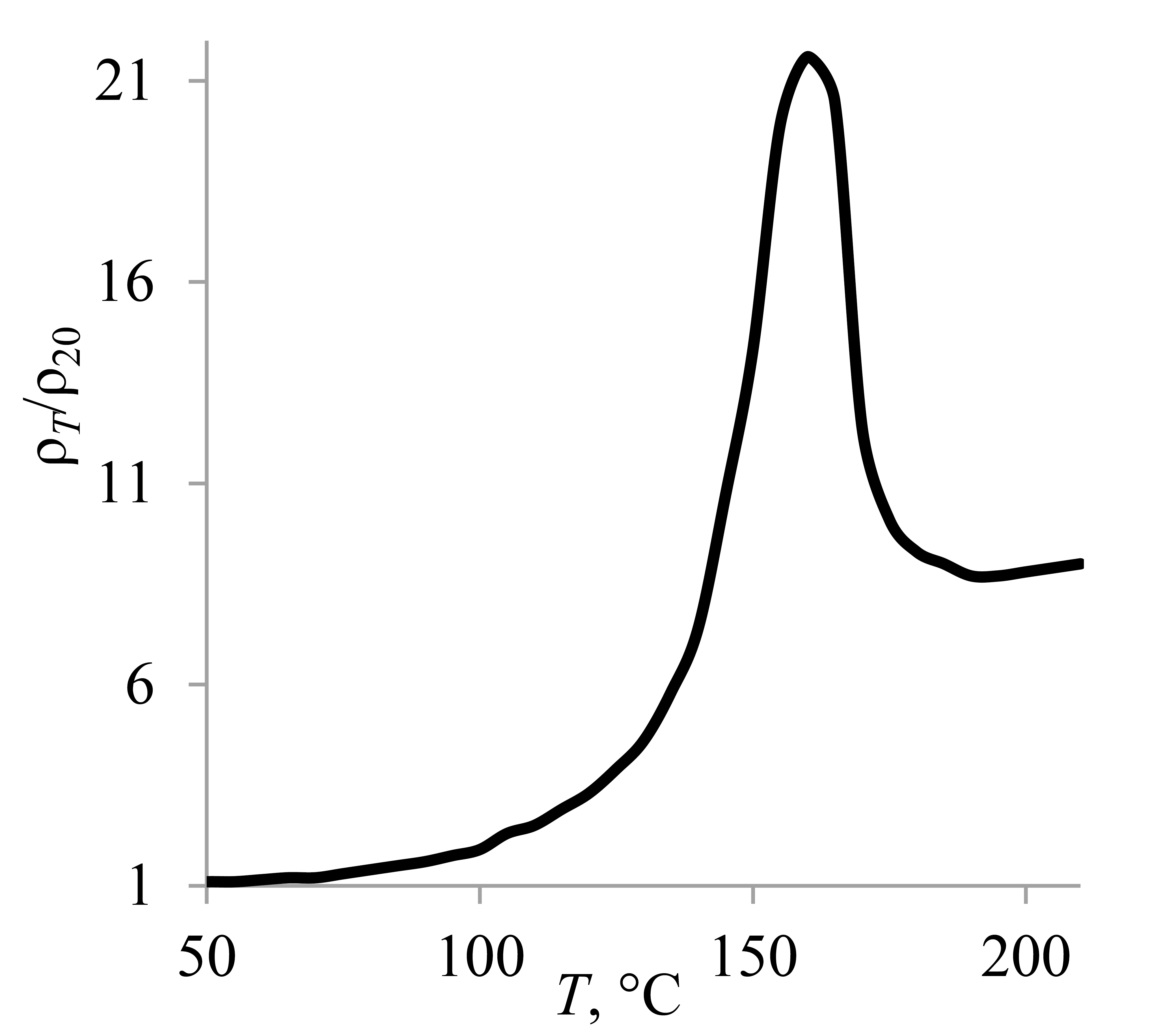Methods. Conductive polypropylene composites filled with carbon black UM-76 were investigated. The samples were deformed and kept under constant bending at temperatures of 20–155 °C.