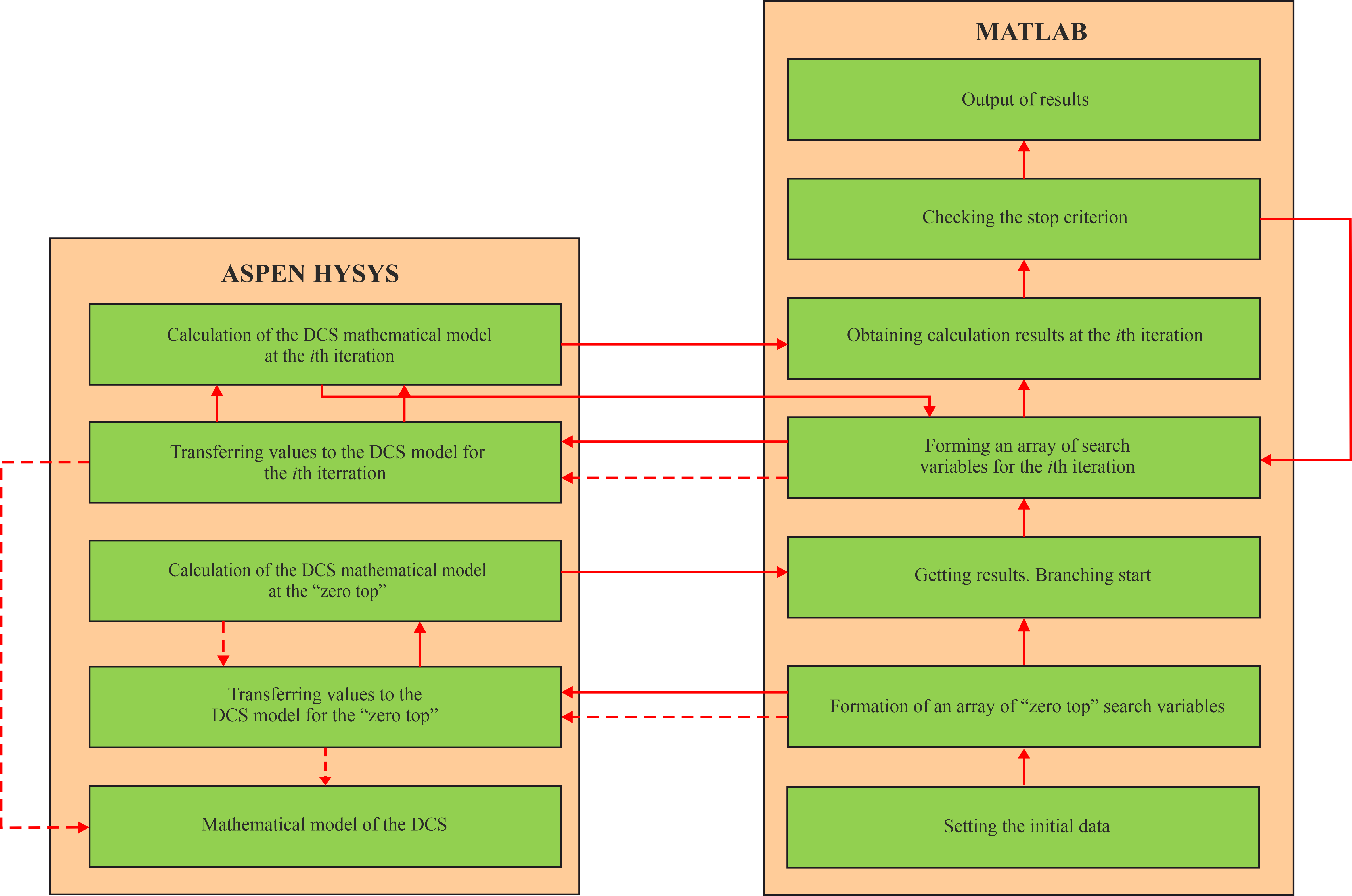 Methods. The solution to this problem is based on the branch and bound method. A computer model of the distillation column system was developed in the environment of the Aspen Hysys software package. The Inside–Out module was used as the distillation model. The developed algorithm is implemented in the software environment of the Matlab mathematical package. To solve the conditional optimization problem, a sequential quadratic programming method-based model was used. The interaction between software add-ins in Matlab and Aspen Hysys is implemented using a Component Object Model interface.