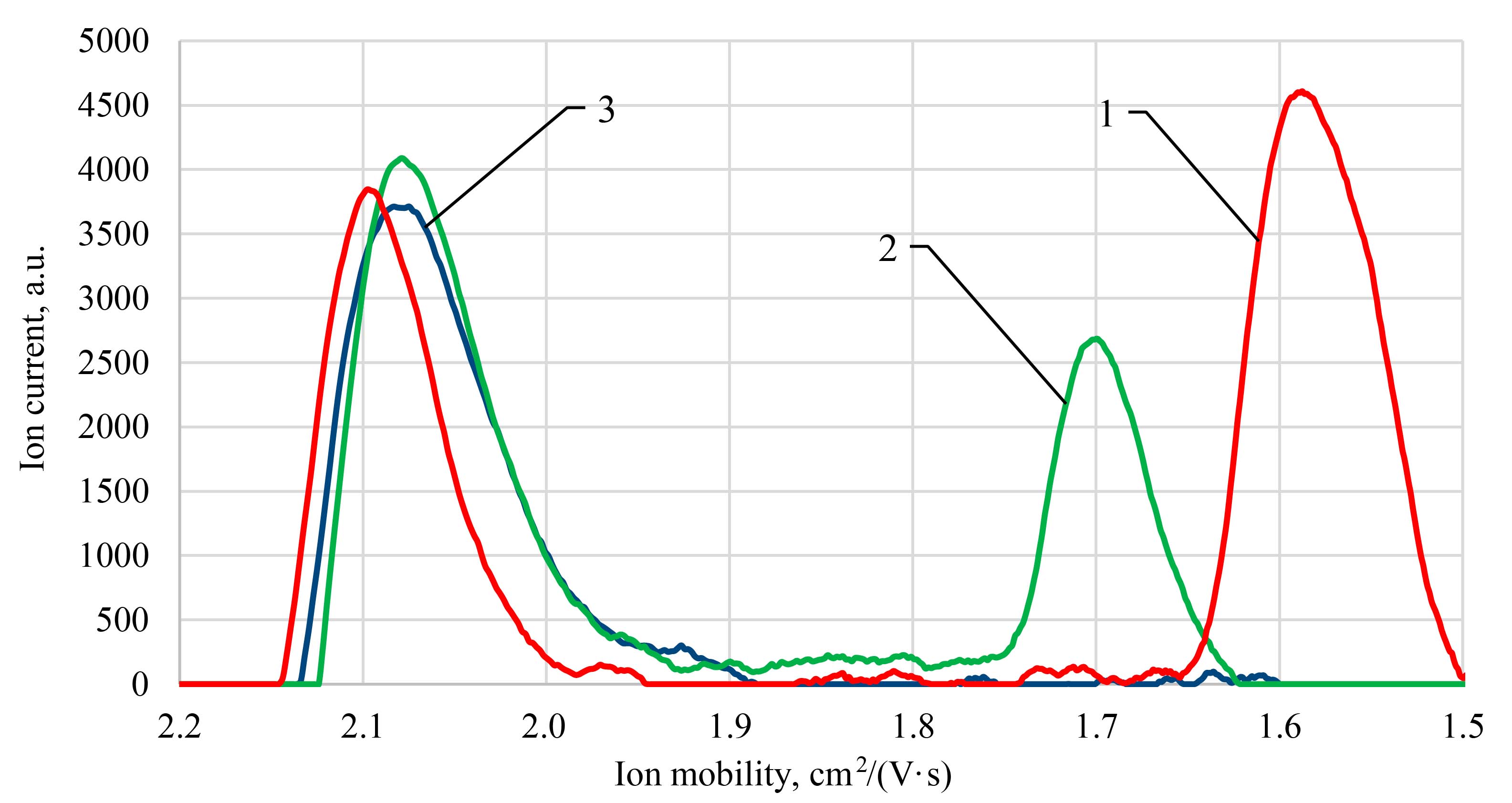Conclusions. The characteristic signal of the N-methylimidazole ion protonated at the nitrogen atom of the pyridine type was revealed. It was found that two signals in the ion mobility spectra of N-methylimidazole correspond to the presence of the monomer and dimer ions. The detection limit of N-methylimidazole on the ion-drift detector Kerber was determined, amounting to 3 pg.