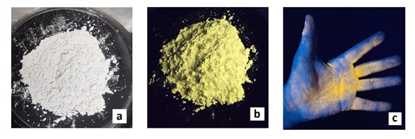 Methods. The synthesized materials were studied using X-ray phase analysis and scanning electron microscopy. Photos of the samples were taken under illumination with an incandescent lamp or a fluorescent ultraviolet lamp.