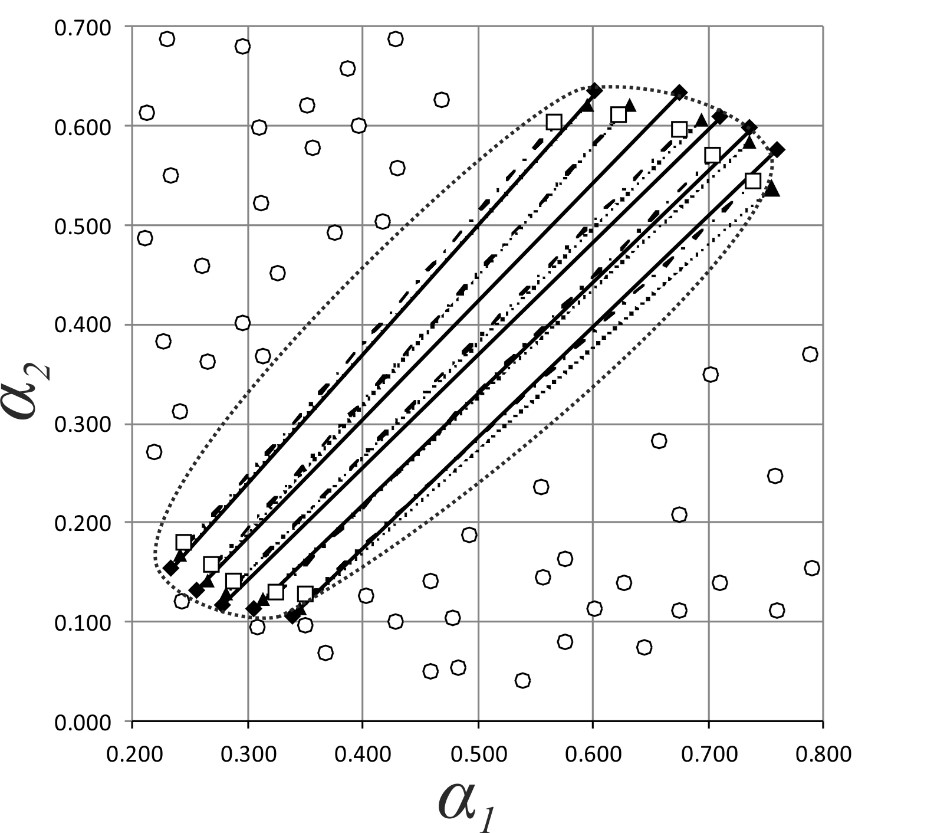1. Chemical equilibrium surface in the square of transformed concentration variables (αi) for the system