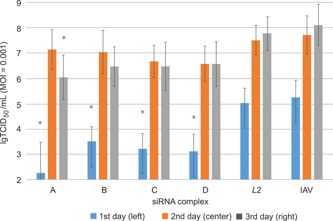 - The use of siRNA complexes leads to a decrease in viral reproduction with a multiplicity of infection of 0.001 according to real-time reverse transcription quantitative polymerase chain reaction and titration by cytopathic effect.