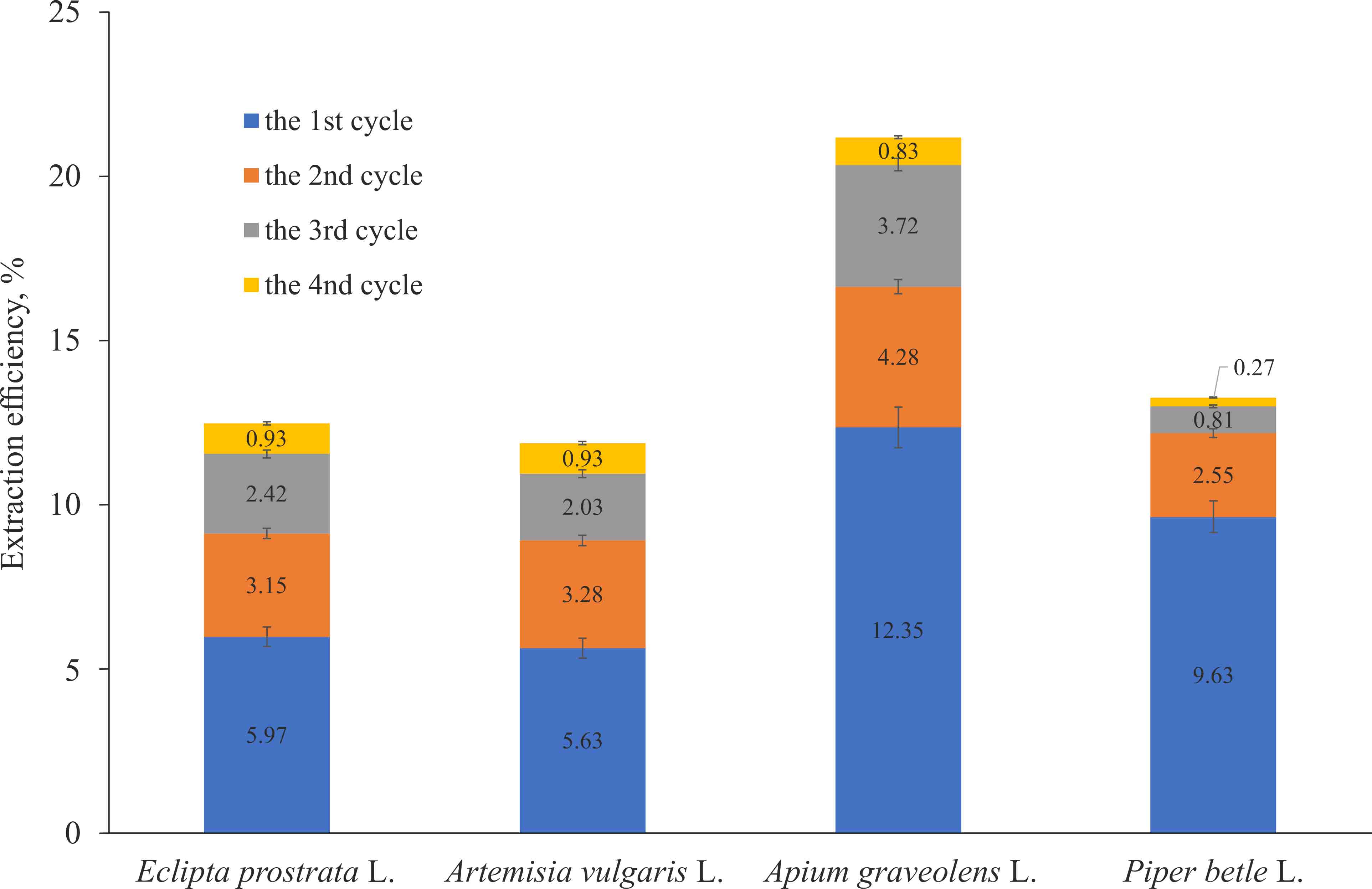 1. Extraction efficiencies of four studied plants | |