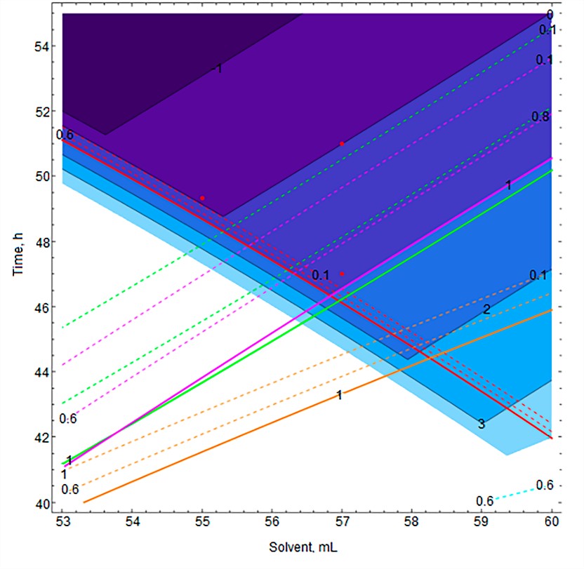 Shatalov D.O., Trachuk K.N., Aydakova A.V., Akhmedova D.A., Ivanov I.S., Minenkov D.S., Blazhevich I.Yu., Kedik S.A. Implementation of pharmaceutical development using multivariate analysis of multi-criteria optimization on the example of the stage of purification of oligohexamethyleneguanidine hydrosuccinate. Fine Chemical Technologies. 2023;18(3):265-279. https://doi.org/10.32362/2410-6593-2023-18-3-265-279