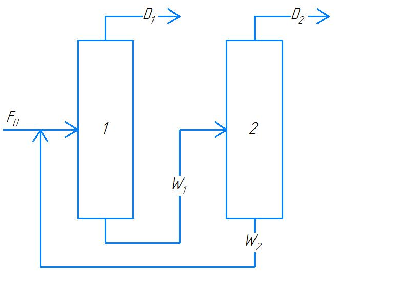 Conclusions. The study established the operation parameters of the columns (number of theoretical stages, feed stages of the original mixture and separating agent, and reflux ratio) and energy consumption (total heat supplied to the columns boiler) of three separation flowsheets ensuring the production of products of a given quality (not less than 0.99 mol fractions). The flowsheet with diethylene glycol is characterized by the lowest energy consumption. It is recommended that complexes of extractive and re-extractive distillation be further optimized. This enables the second product of cumulus production—acetone—to be involved in the technological cycle.
