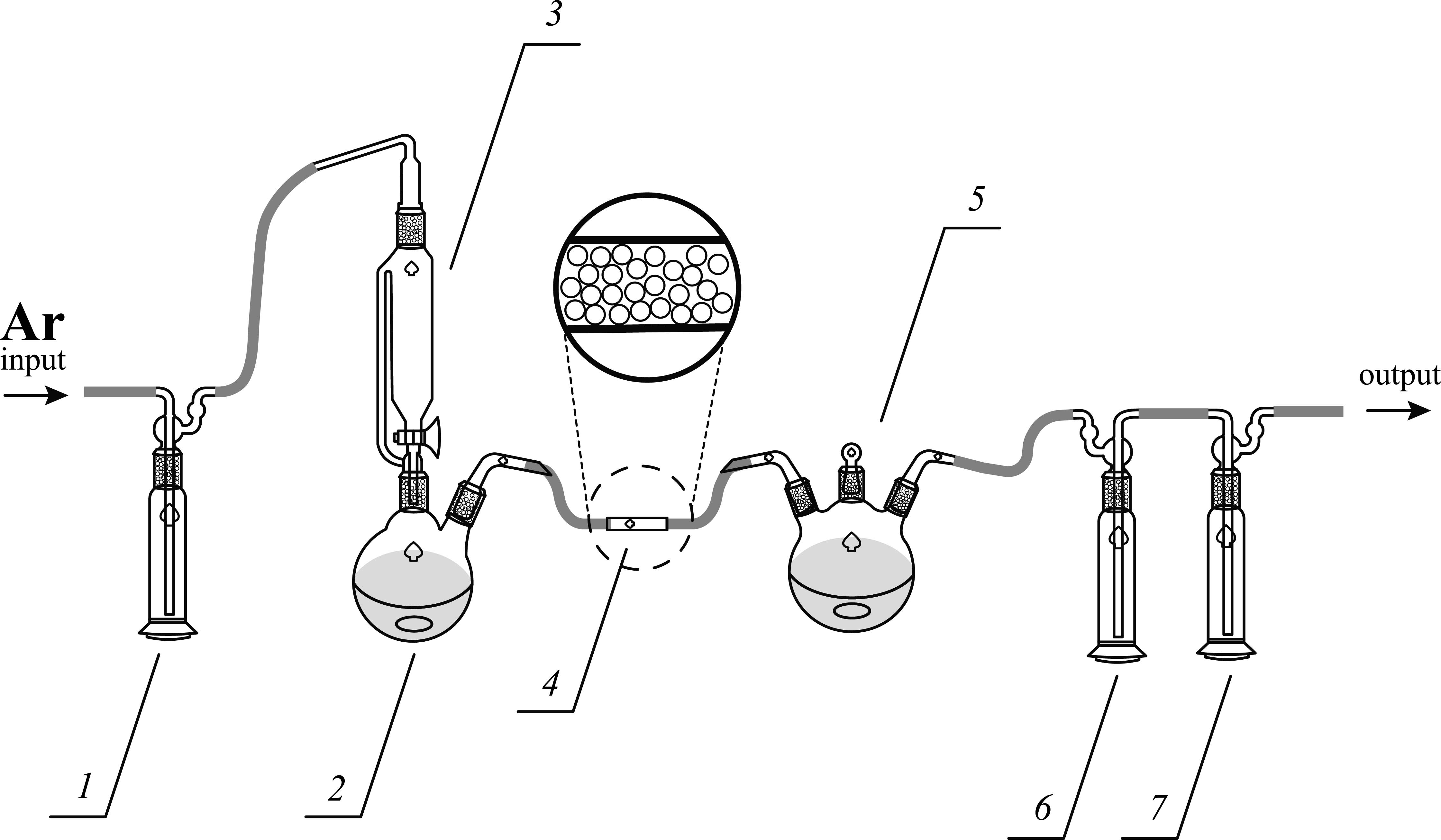 Methods. Since substitution reactions are sensitive to moisture and atmospheric oxygen, the syntheses were carried out in a direct flow of argon or in a dry, sealed SPEKS GB02M glove box with a double gas purification unit and two airlocks. The reaction was initiated by cooling to 0°C, in order to avoid the formation of by-products. All the results were characterized using infrared (IR) and nuclear magnetic resonance (NMR) spectroscopies.