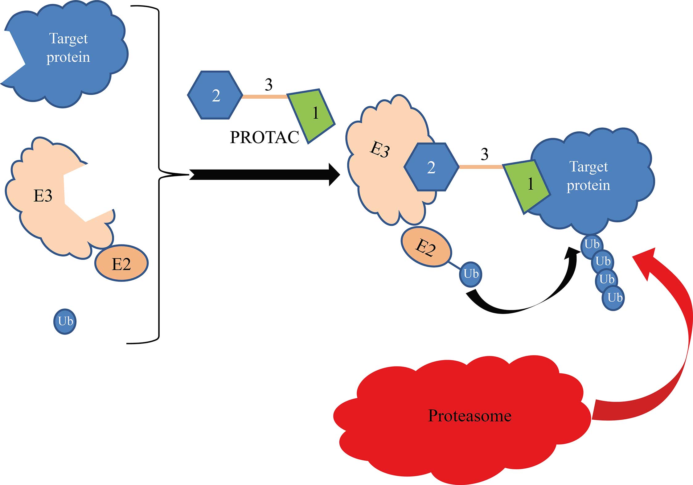 1. PROTAC-induced degradation of the target protein by the ubiquitin-proteasome system