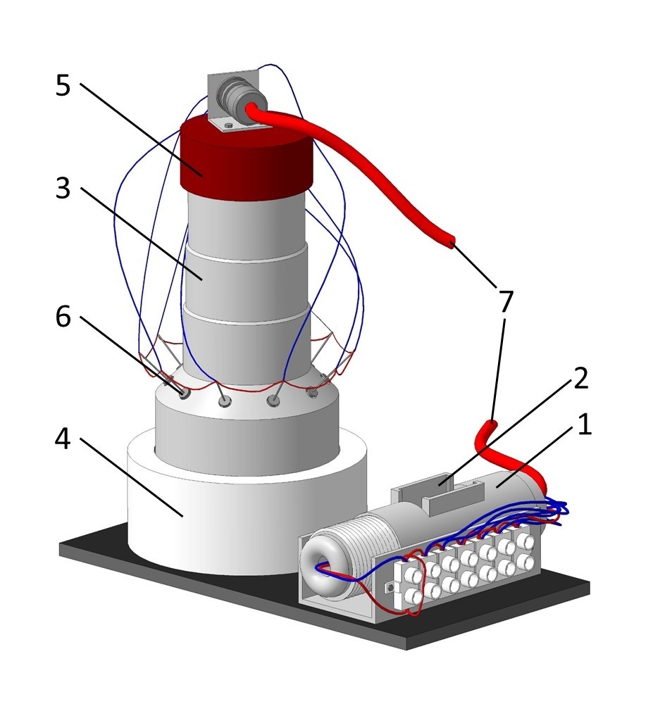 1. Fig. 1. LED miniphotometer: 1 – device housing of transmission measurement (the diode matrix is coaxially located with the detector); 2 – cell holder; 3 – device housing of diffuse reflection spectroscope; 4 – stand for solid phase; 5 – photodiode | |