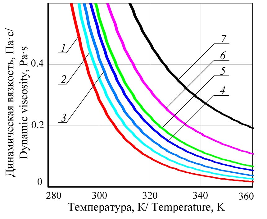1. Dependencies of the dynamic viscosity of M-14D2SE (1) oil on temperature at different concentrations of N220 dusty soot | |