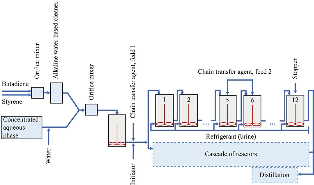 1. Scheme of continuous production of synthetic rubber by emulsion copolymerization of butadiene with styrene | |