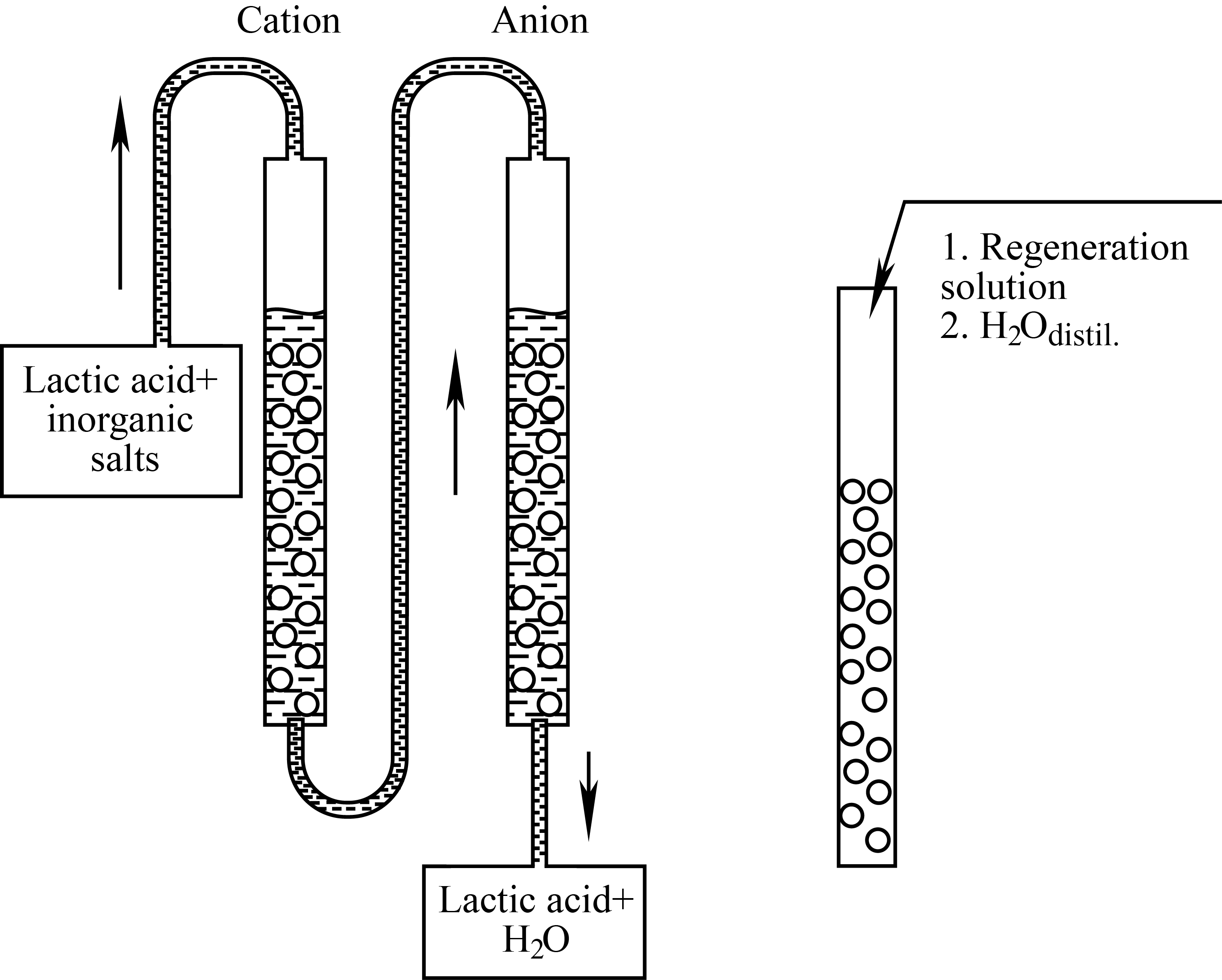 - The model fermentation broth passing successively through cation-exchange and anion-exchange columns was shown to be purified from impurities of mineral salts while maintaining the concentration of lactic acid.
