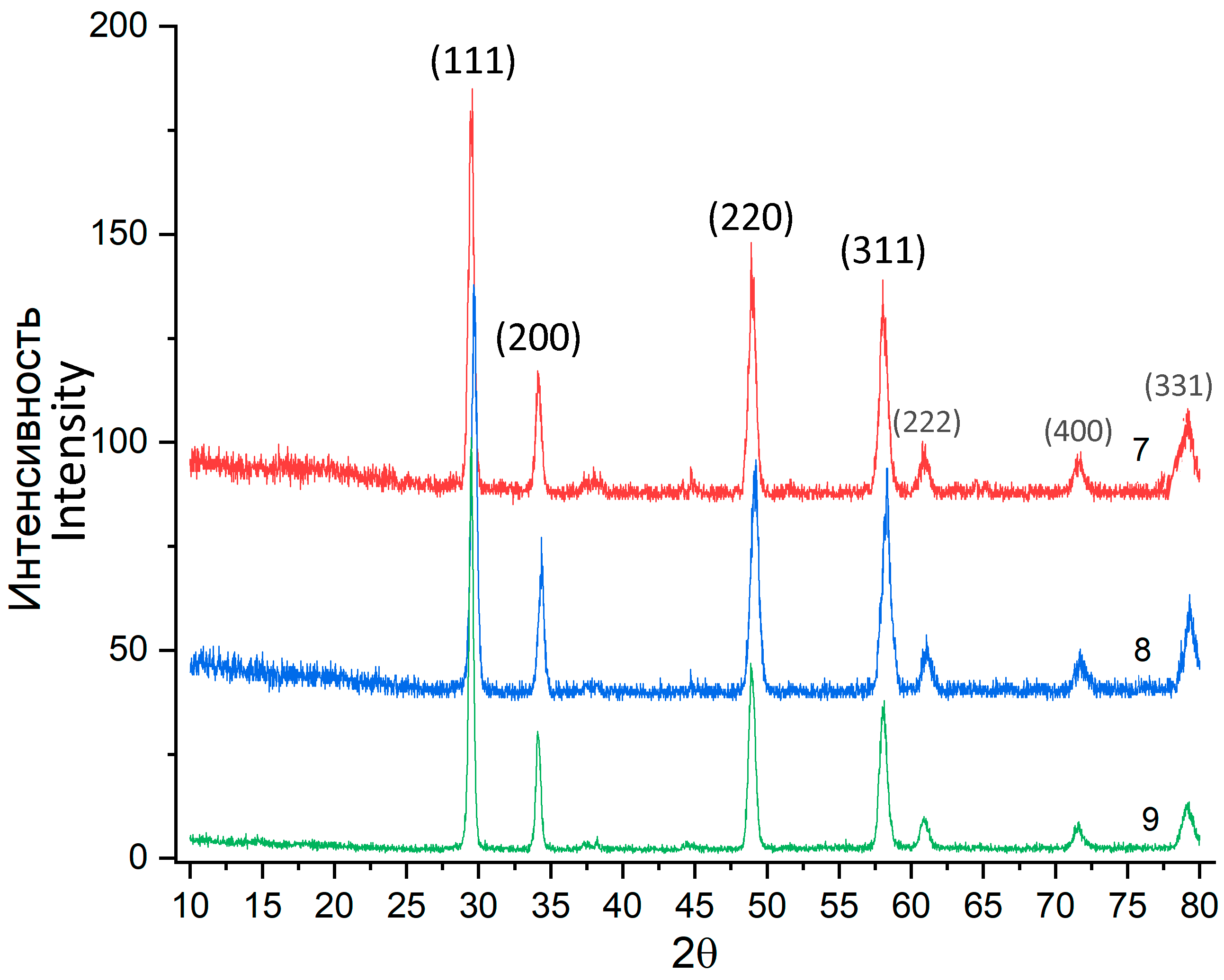 - As well as determining the dependence of the phase composition on the heat treatment temperature after microwave exposure, the dependence of the change in the unit cell parameters on the gadolinium content in the sample was studied, the particle size distribution was investigated.