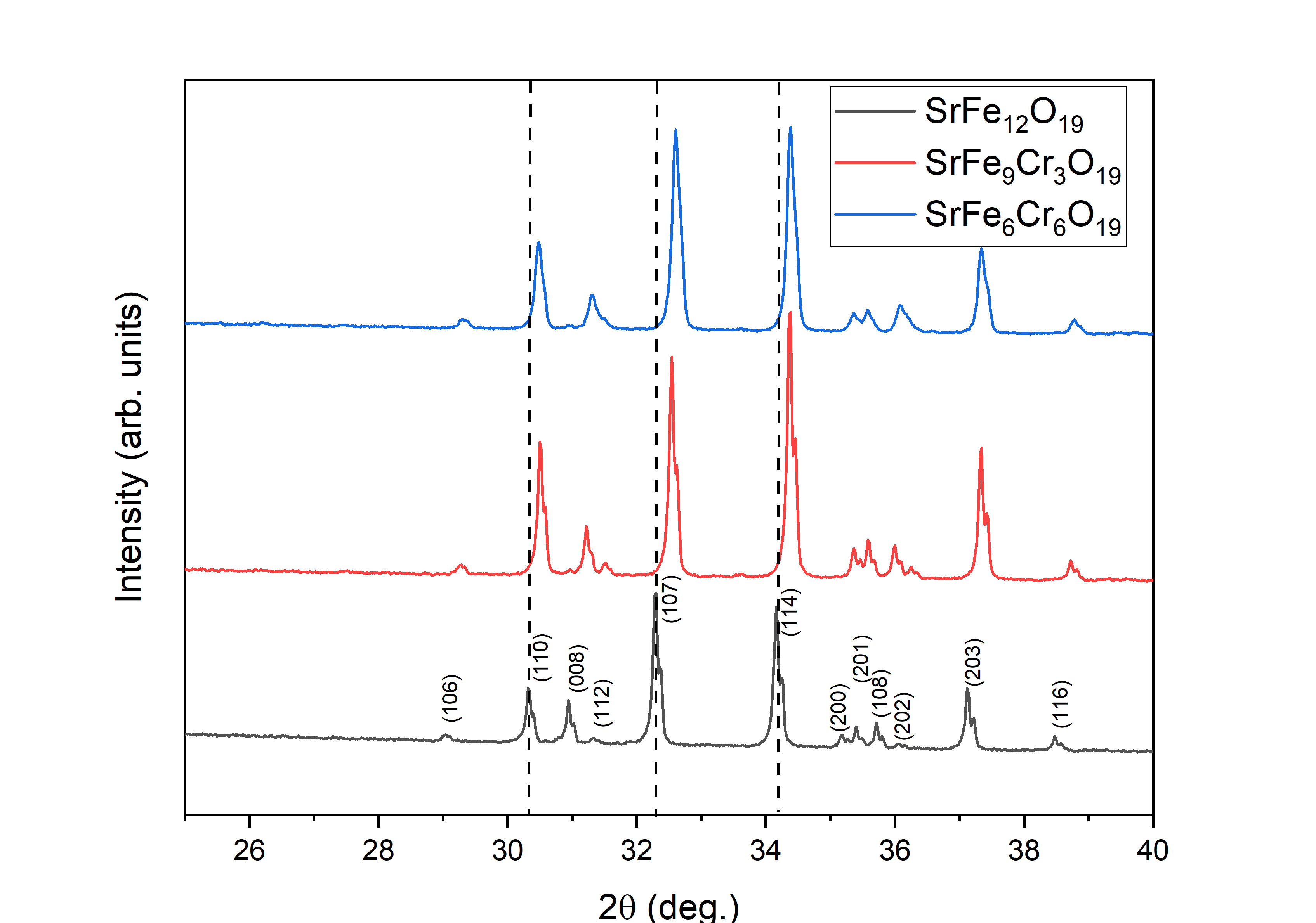 - Pure samples of Cr-substituted strontium hexaferrite were synthesized.